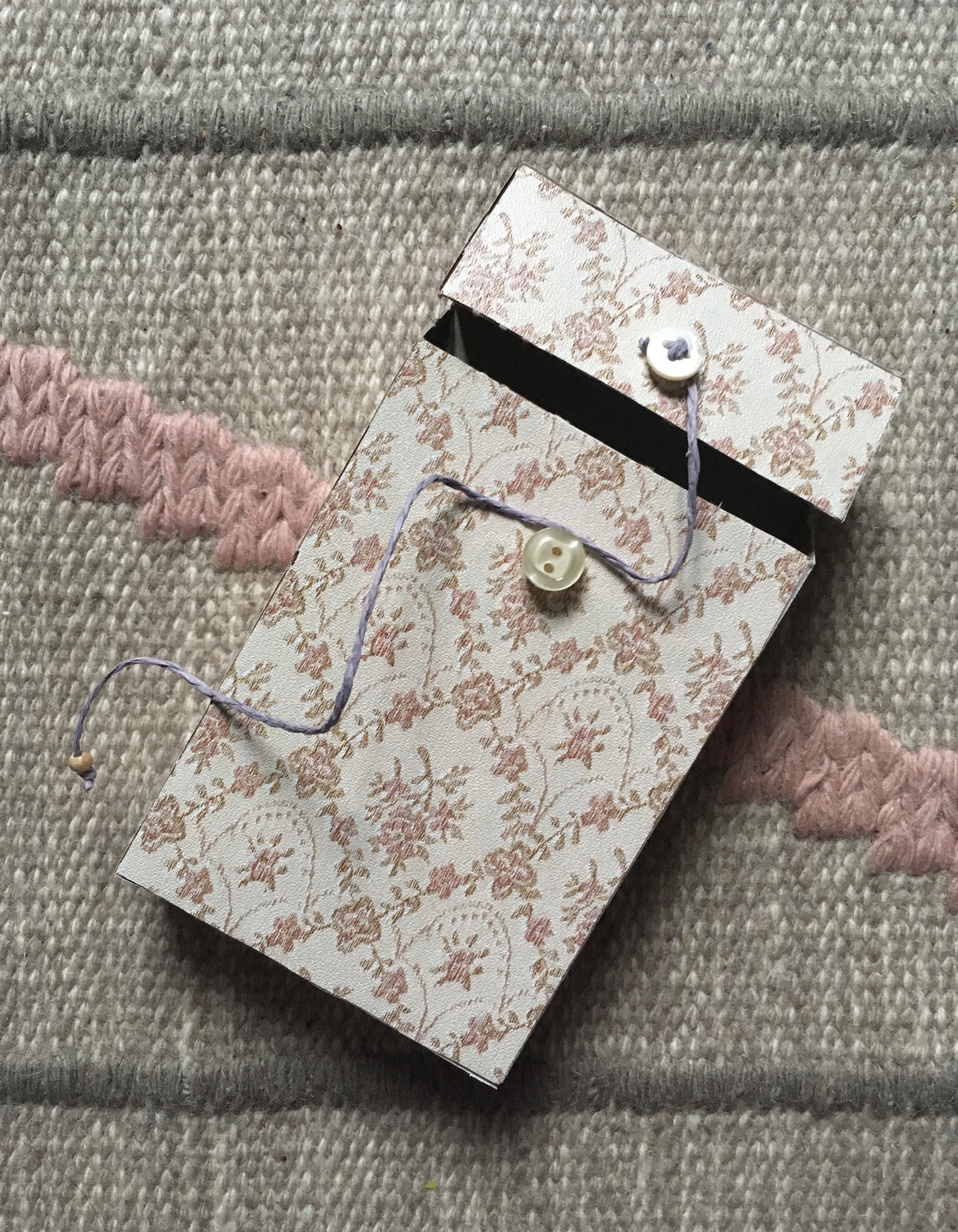 Old chocolate box renovated with floral paper.